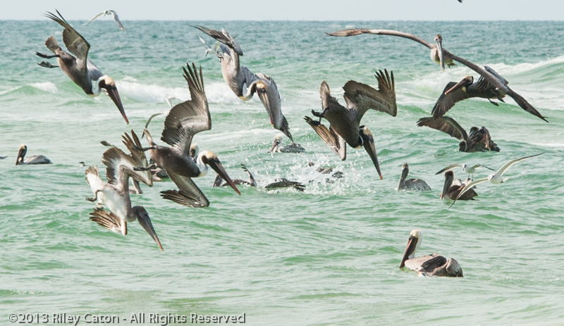 The Great Blue Herons are nesting on the banks of a pond near where we are camped. And, it is time to watch the pelicans, terns, and gulls in a feeding frenzy on the water’s edge.