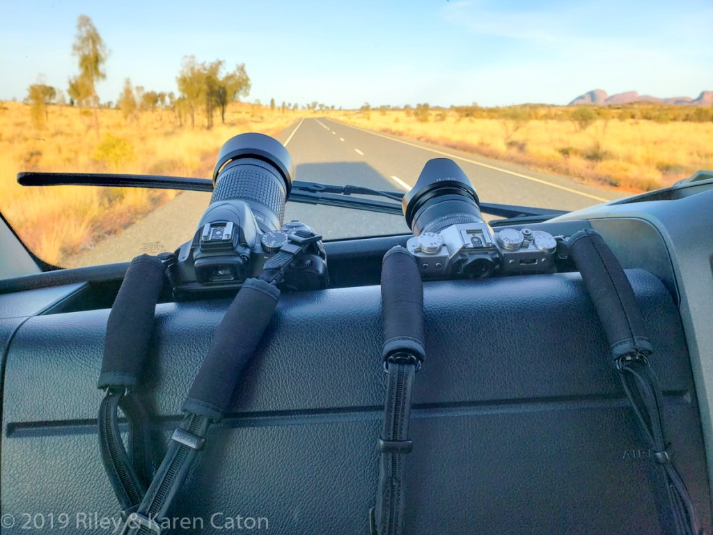 Cameras always at the ready. One with a telephoto and one with a standard lens.