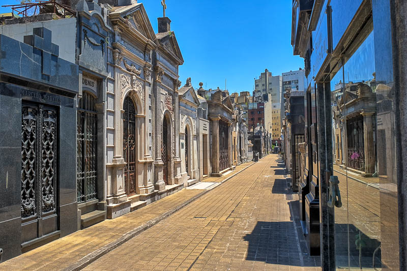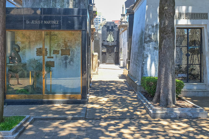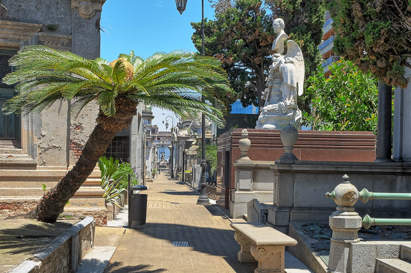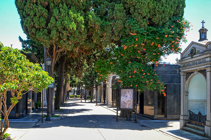 After canceling the cruise to Antarctica, the cruise company flew us back to Buenos Aires and put us up in a five-star luxury hotel in the center of the city. Our flight back to Houston didn’t leave until 10:00 PM the next day so we had plenty of time to do some exploring in Buenos Aires and the Recoleta cemetery was high on our list. It was an easy but hot (88 degree) 25 minute walk from the hotel to the cemetery along tree lined streets.