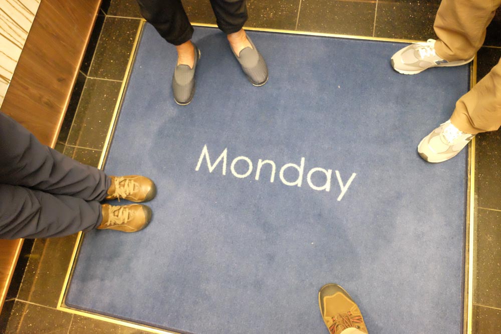In the meantime, we will try to keep an eye on the elevator rugs so we know which day it is…