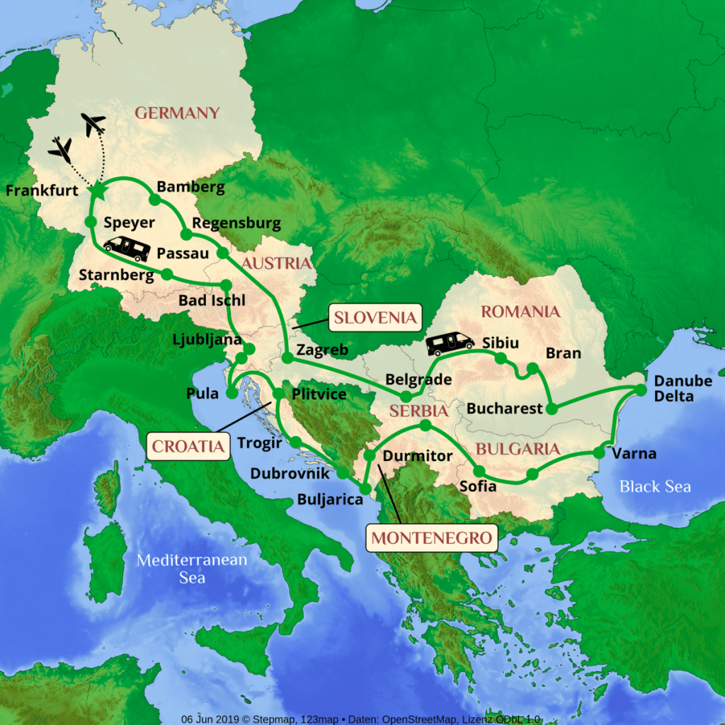 We’ve been planning this trip since 2019 and it doesn’t seem like we’re actually on our way. So, “where are you going” you may ask. Answer: twelve European countries. Here’s a map of the first part of the trip.
